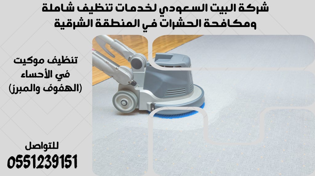 إذا كنت بحاجة إلى تنظيف موكيت شاملة واحترافية في الأحساء (الهفوف والمبرز)، تواصل الآن مع شركة البيت السعودي عبر الرقم 0551239151. نحن نعدك بتقديم خدمة تنظيف ممتازة ونتائج مضمونة.