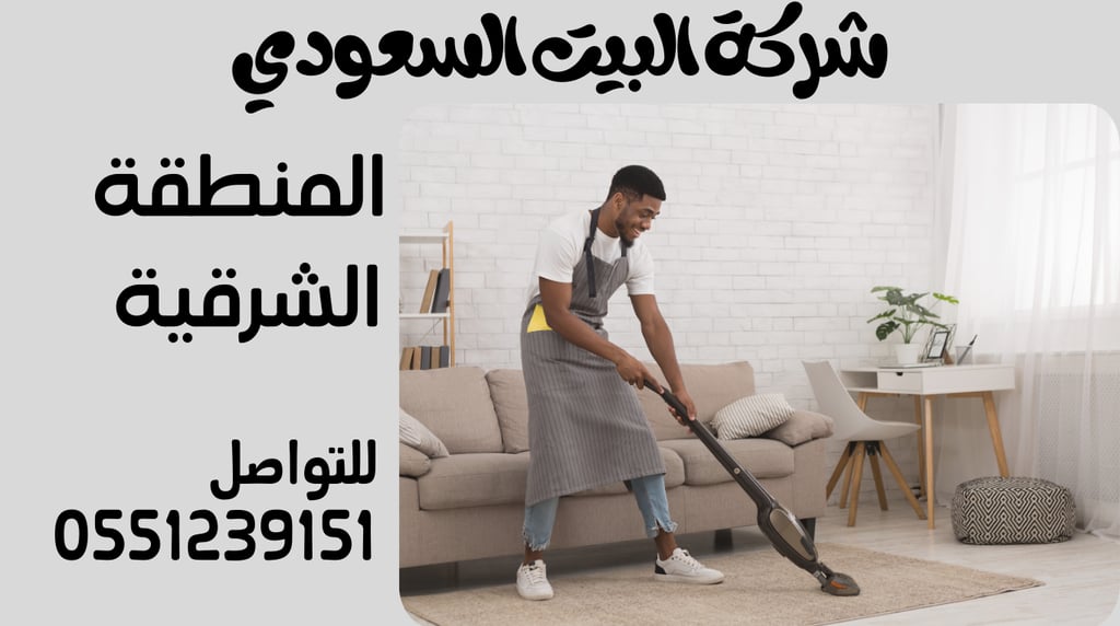 "نحن في شركة البيت السعودي نقدم خدمات تنظيف شاملة ومتكاملة تشمل تنظيف الشقق، المنازل، الفلل، القصور، والمكاتب، بالإضافة إلى مكافحة الحشرات بأنواعها وعزل الخزانات والأسطح. نغطي جميع مدن المنطقة الشرقية مثل الدمام، الخبر، القطيف، الجبيل، رأس تنورة، النعيرية، بقيق، الأحساء (الهفوف والمبرز)، والظهران. تواصل معنا الآن لخدمة احترافية بأعلى معايير الجودة."