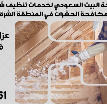 "نحن في شركة البيت السعودي نقدم خدمات تنظيف شاملة ومتكاملة تشمل تنظيف الشقق، المنازل، الفلل، القصور، والمكاتب، بالإضافة إلى مكافحة الحشرات بأنواعها وعزل الخزانات والأسطح. نغطي جميع مدن المنطقة الشرقية مثل الدمام، الخبر، القطيف، الجبيل، رأس تنورة، النعيرية، بقيق، الأحساء (الهفوف والمبرز)، والظهران. تواصل معنا الآن لخدمة احترافية بأعلى معايير الجودة."