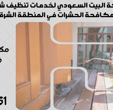 "نحن في شركة البيت السعودي نقدم خدمات تنظيف شاملة ومتكاملة تشمل تنظيف الشقق، المنازل، الفلل، القصور، والمكاتب، بالإضافة إلى مكافحة الحشرات بأنواعها وعزل الخزانات والأسطح. نغطي جميع مدن المنطقة الشرقية مثل الدمام، الخبر، القطيف، الجبيل، رأس تنورة، النعيرية، بقيق، الأحساء (الهفوف والمبرز)، والظهران. تواصل معنا الآن لخدمة احترافية بأعلى معايير الجودة."