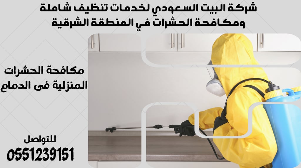 إذا كنت تعاني من مشكلة الحشرات المنزلية في الدمام، فإن شركة البيت السعودي تقدم لك الحلول المثالية والفعّالة لتعيش في بيئة نظيفة وصحية.