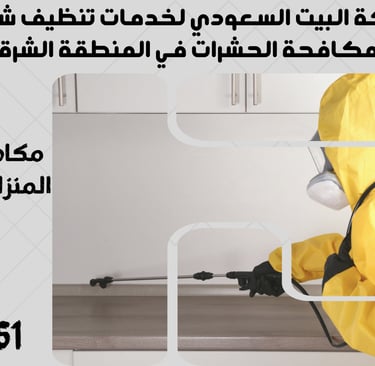"نحن في شركة البيت السعودي نقدم خدمات تنظيف شاملة ومتكاملة تشمل تنظيف الشقق، المنازل، الفلل، القصور، والمكاتب، بالإضافة إلى مكافحة الحشرات بأنواعها وعزل الخزانات والأسطح. نغطي جميع مدن المنطقة الشرقية مثل الدمام، الخبر، القطيف، الجبيل، رأس تنورة، النعيرية، بقيق، الأحساء (الهفوف والمبرز)، والظهران. تواصل معنا الآن لخدمة احترافية بأعلى معايير الجودة."