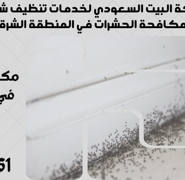 "نحن في شركة البيت السعودي نقدم خدمات تنظيف شاملة ومتكاملة تشمل تنظيف الشقق، المنازل، الفلل، القصور، والمكاتب، بالإضافة إلى مكافحة الحشرات بأنواعها وعزل الخزانات والأسطح. نغطي جميع مدن المنطقة الشرقية مثل الدمام، الخبر، القطيف، الجبيل، رأس تنورة، النعيرية، بقيق، الأحساء (الهفوف والمبرز)، والظهران. تواصل معنا الآن لخدمة احترافية بأعلى معايير الجودة."