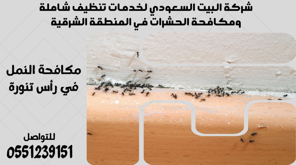 إذا كنت بحاجة إلى مكافحة النمل في رأس تنورة، تواصل الآن مع شركة البيت السعودي عبر الرقم 0551239151. نحن نعدك بتقديم خدمة فعّالة وآمنة للقضاء على النمل في أسرع وقت ممكن.