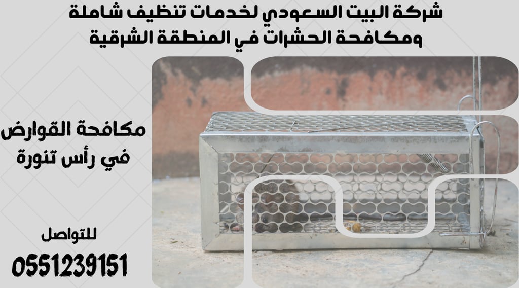إذا كنت تبحث عن خدمات مكافحة القوارض في رأس تنورة، فإن شركة البيت السعودي هي خيارك المثالي. تقدم الشركة حلولاً شاملة وفعالة للقضاء على القوارض وحماية منزلك أو عملك من الأضرار التي يمكن أن تسببها. يتميز فريق الشركة بخبرة واسعة في هذا المجال ويستخدم أحدث التقنيات والمبيدات الآمنة لضمان سلامة الأسرة والبيئة. لا تتردد في التواصل مع شركة البيت السعودي على الرقم 0551239151 للحصول على استشارة مجانية أو لتحديد موعد للفحص. مع الالتزام بالجودة والاحترافية، تعتبر الشركة شريكك المثالي في الحفاظ على بيئة خالية من القوارض.