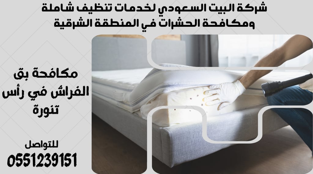 إذا كنت بحاجة إلى مكافحة بق الفراش في رأس تنورة، تواصل الآن مع شركة البيت السعودي عبر الرقم 0551239151. نحن نعدك بتقديم خدمة فعّالة وآمنة لضمان بيئة خالية من بق الفراش.