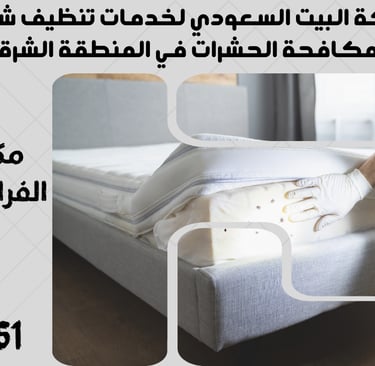 "نحن في شركة البيت السعودي نقدم خدمات تنظيف شاملة ومتكاملة تشمل تنظيف الشقق، المنازل، الفلل، القصور، والمكاتب، بالإضافة إلى مكافحة الحشرات بأنواعها وعزل الخزانات والأسطح. نغطي جميع مدن المنطقة الشرقية مثل الدمام، الخبر، القطيف، الجبيل، رأس تنورة، النعيرية، بقيق، الأحساء (الهفوف والمبرز)، والظهران. تواصل معنا الآن لخدمة احترافية بأعلى معايير الجودة."