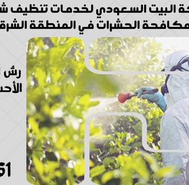 شركة البيت السعودي – الخيار الأفضل لرش المبيدات في الأحساء. اتصل الآن واحصل على استشارة مجانية وخدمة مضمونة!