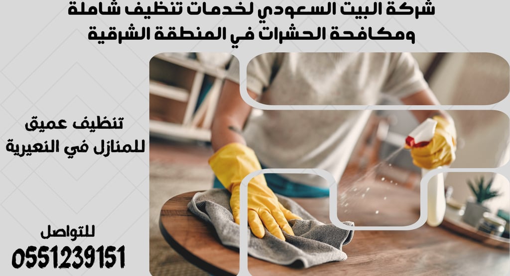 إذا كنت بحاجة إلى تنظيف عميق للمنازل في النعيرية، تواصل الآن مع شركة البيت السعودي عبر الرقم 0551239151. نحن نعدك بتقديم خدمة تنظيف شاملة وفعّالة تمنحك منزلًا نظيفًا وصحيًا.