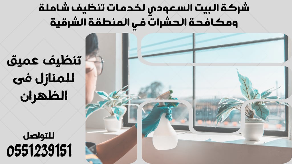 شركة البيت السعودي تقدم خدمات تنظيف عميق للمنازل في الظهران، حيث تضمن لك تجربة تنظيف استثنائية تلبي جميع احتياجاتك. يستخدم فريقنا المدرب تقنيات حديثة ومعدات عالية الجودة لتحقيق أفضل نتائج لتنظيف منزلك. يعتبر تنظيف المنزل أمرًا مهمًا للحفاظ على صحة عائلتك وراحتها، لذلك نحرص على إزالة الأتربة والجراثيم بشكل فعال. اتصل بنا على الرقم 0551239151 للحصول على استشارة مجانية وحجز موعد يناسبك. فريقنا مستعد لتقديم الخدمة بأسرع وقت وبأفضل الأسعار. لا تتردد في اختيار شركة البيت السعودي لجعل منزلك نظيفًا وآمنًا. نحن هنا لضمان راحتك وسعادتك في كل ركن من أركان منزلك.