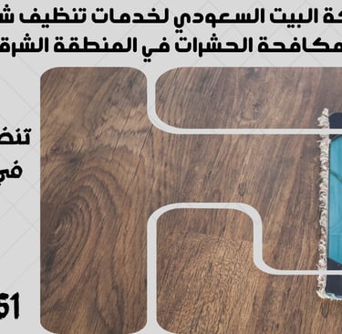 "نحن في شركة البيت السعودي نقدم خدمات تنظيف شاملة ومتكاملة تشمل تنظيف الشقق، المنازل، الفلل، القصور، والمكاتب، بالإضافة إلى مكافحة الحشرات بأنواعها وعزل الخزانات والأسطح. نغطي جميع مدن المنطقة الشرقية مثل الدمام، الخبر، القطيف، الجبيل، رأس تنورة، النعيرية، بقيق، الأحساء (الهفوف والمبرز)، والظهران. تواصل معنا الآن لخدمة احترافية بأعلى معايير الجودة."