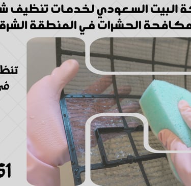 "نحن في شركة البيت السعودي نقدم خدمات تنظيف شاملة ومتكاملة تشمل تنظيف الشقق، المنازل، الفلل، القصور، والمكاتب، بالإضافة إلى مكافحة الحشرات بأنواعها وعزل الخزانات والأسطح. نغطي جميع مدن المنطقة الشرقية مثل الدمام، الخبر، القطيف، الجبيل، رأس تنورة، النعيرية، بقيق، الأحساء (الهفوف والمبرز)، والظهران. تواصل معنا الآن لخدمة احترافية بأعلى معايير الجودة."