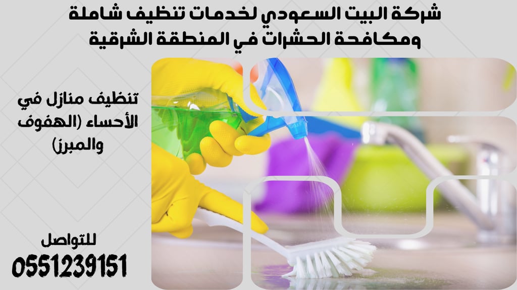 شركة البيت السعودي هي الخيار الأمثل لتقديم خدمات تنظيف المنازل في الأحساء (الهفوف والمبرز) بجودة عالية واحترافية. نحن نسعى لضمان نظافة منزلك باستخدام أحدث الأدوات والمعدات وبأيدي خبراء متخصصين.