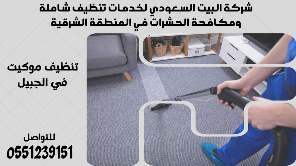 حافظ على جمال ونظافة موكيت منزلك مع شركة البيت السعودي. تواصل معنا على الرقم 0551239151 للحصول على أفضل خدمات تنظيف الموكيت في الجبيل. نحن هنا لنمنحك الراحة والنظافة التي تستحقها.