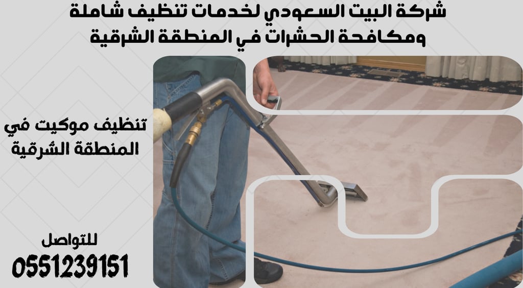 تُقدّم شركة البيت السعودي خدمات تنظيف موكيت متميزة في المنطقة الشرقية، حيث تتميز الكفاءة والجودة في كل عمل تقوم به. باستخدام أحدث التقنيات والمواد الآمنة، تضمن الشركة إزالة البقع والأوساخ بفاعلية دون التأثير على جودة الموكيت أو لونها. تتوفر خدماتنا على مدار الساعة، مما يوفر للعميل المرونة في تحديد الوقت المناسب لتنظيف موكيت منزله أو مكتبه. بالإضافة إلى ذلك، يتمتع فريق العمل لدينا بخبرة عالية واحترافية، مما يضمن رضا العملاء وتلبية توقعاتهم. لا تتردد في الاتصال بنا على الرقم 0551239151 للحصول على استشارة مجانية أو للحجز.