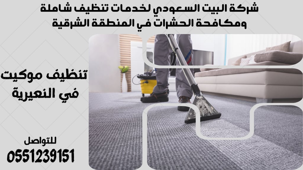 إذا كنت بحاجة إلى تنظيف موكيت شاملة واحترافية في النعيرية، تواصل الآن مع شركة البيت السعودي عبر الرقم 0551239151. نحن نعدك بتقديم خدمة تنظيف ممتازة ونتائج مضمونة.