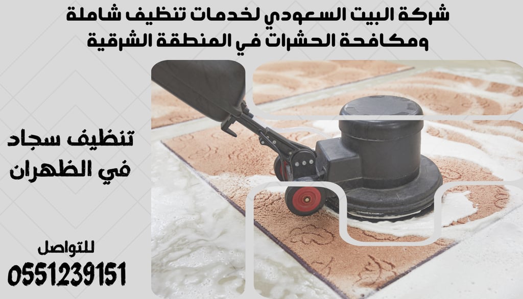 لا تترك سجادك يعاني من البقع والأوساخ، تواصل مع شركة البيت السعودي على الرقم 0551239151 لتحصل على أفضل خدمات تنظيف السجاد في الظهران. نحن هنا لجعل حياتك أكثر راحة ونظافة.