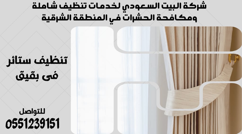 شركة البيت السعودي هي خيارك الأفضل لتجديد ستائرك وضمان نظافتها في بقيق. دعنا نقدم لك الخدمة المثالية اليوم!