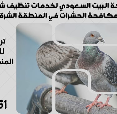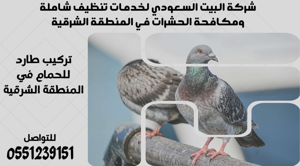 يعتبر انتشار الحمام في المنازل والمباني مشكلة شائعة في المنطقة الشرقية، حيث يسبب الحمام الكثير من الإزعاج بسبب الفضلات التي يتركها، والتي قد تؤدي إلى تلف الأسطح وواجهات المباني، فضلًا عن نقل الأمراض نتيجة تراكم البكتيريا والجراثيم. إذا كنت تبحث عن حل فعال ودائم للتخلص من هذه المشكلة، فإن شركة البيت السعودي تقدم لك خدمة تركيب طارد للحمام باستخدام أفضل أنواع الطوارد الحديثة لضمان بيئة نظيفة وآمنة.