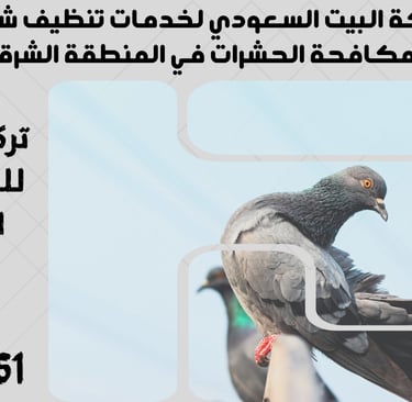 نحن في شركة البيت السعودي نلتزم بتقديم أفضل الحلول لمكافحة الحمام بأساليب آمنة وصديقة للبيئة، مع ضمان تحقيق أفضل النتائج التي تلبي احتياجات عملائنا. دعنا نساعدك اليوم في التخلص من مشكلة الحمام والحفاظ على نظافة وجمال منزلك أو مكتبك.